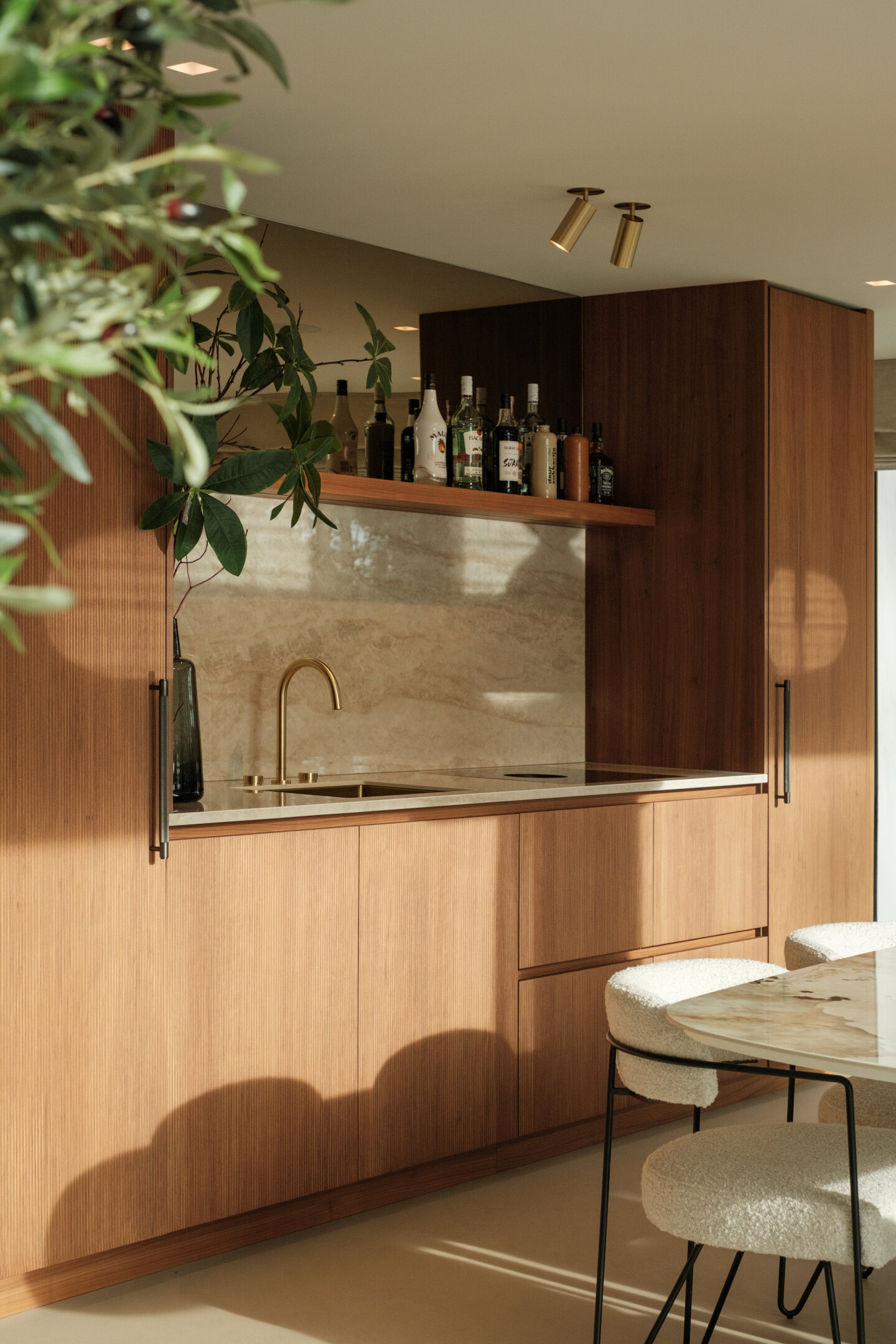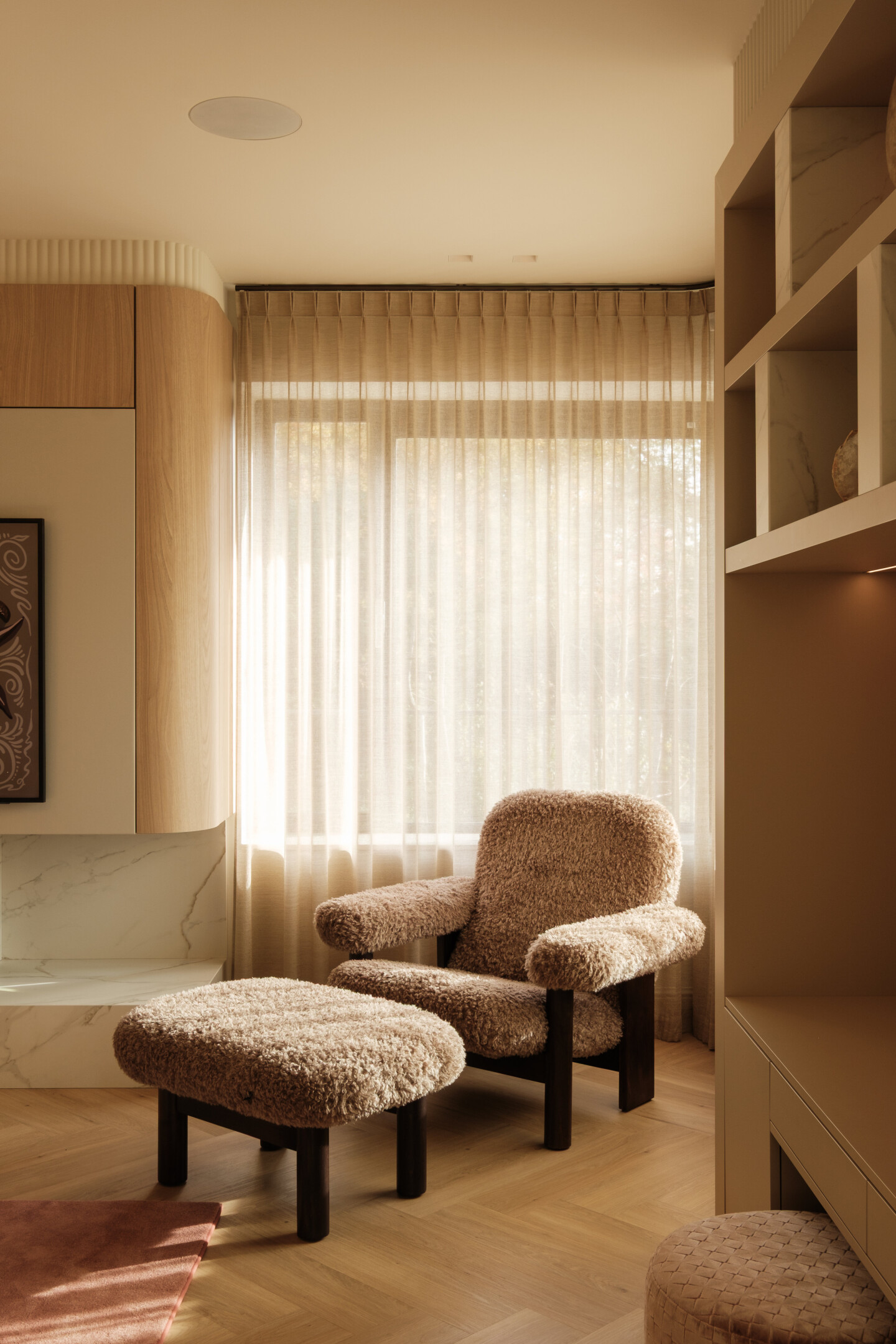 In this villa, materials and colours are well coordinated, creating a cohesive interior. Large windows allow plenty of light to enter and give the space an open feel. The different rugs by Van Besouw give each area its own place and create a sense of unity. This project has been published in The Art of Living.