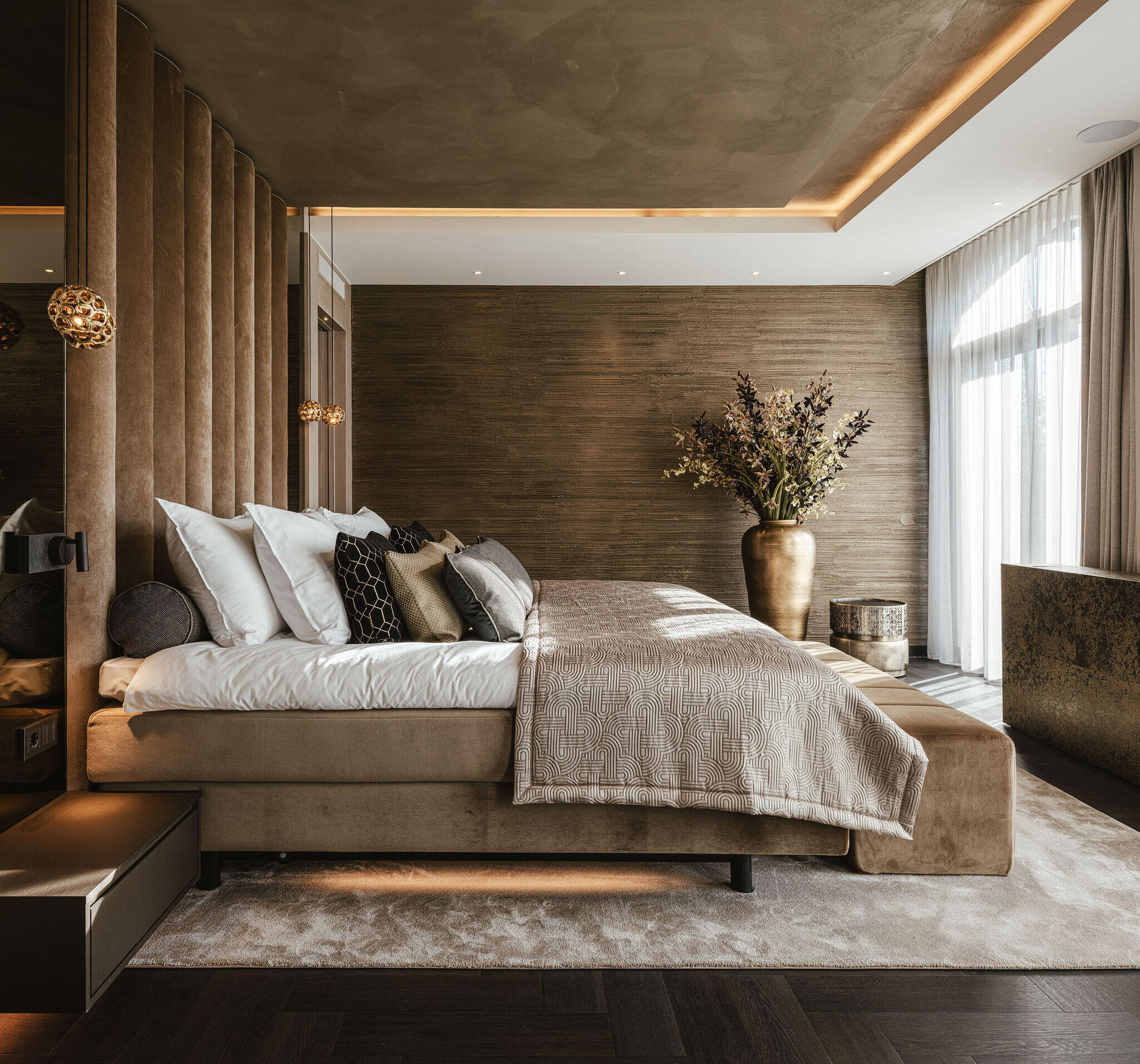 De Van Besouw tapijten en karpetten sluiten daar op aan. In verschillende ruimtes brengen ze zachtheid en comfort, terwijl hun diepe tinten en structuren de gelaagdheid van het interieur accentueren. Zo ontstaat een balans tussen luxe materialen en momenten van rust.